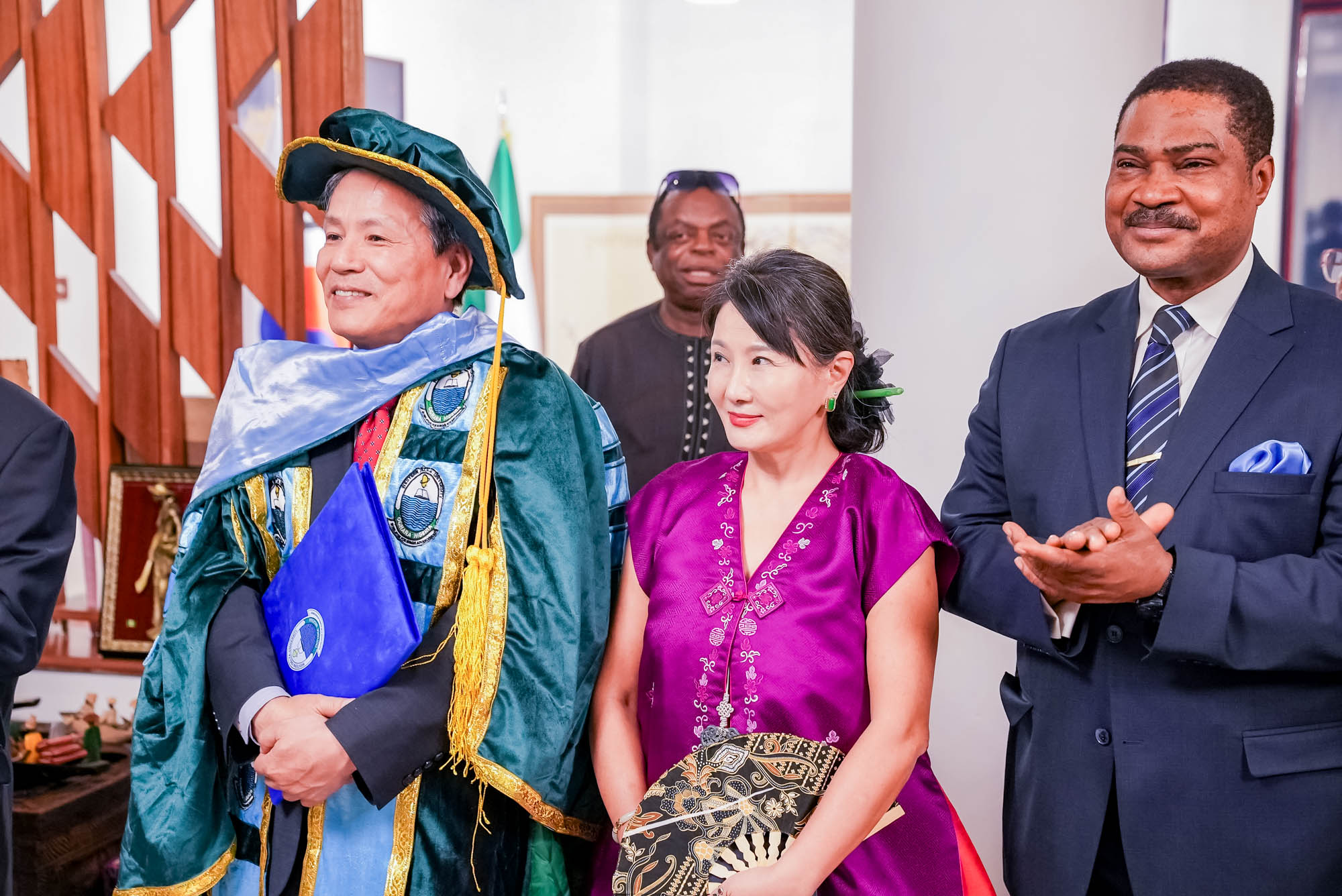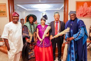 I hosted a high-level Ambassadorial Farewell Ceremony attended by the diplomatic community, past and present Nigerian government officials, International corporation Heads, and leading Nigerian media. The Ambassador was confered an honorary degree from Western Delta University and was further honored by renowned cultural icon Mama Nike of the NIKE Art Gallery and the Alayemore of Ido-Osun, Oba (Dr.) (Arc.) Aderemi Adeen Adeniyi-Adedapo. The ceremony featured farewell remarks from the Ambassador and goodwill messages from distinguished dignitaries, including Bayelsa State Governor Douye Diri, highlighting its national and diplomatic significance.